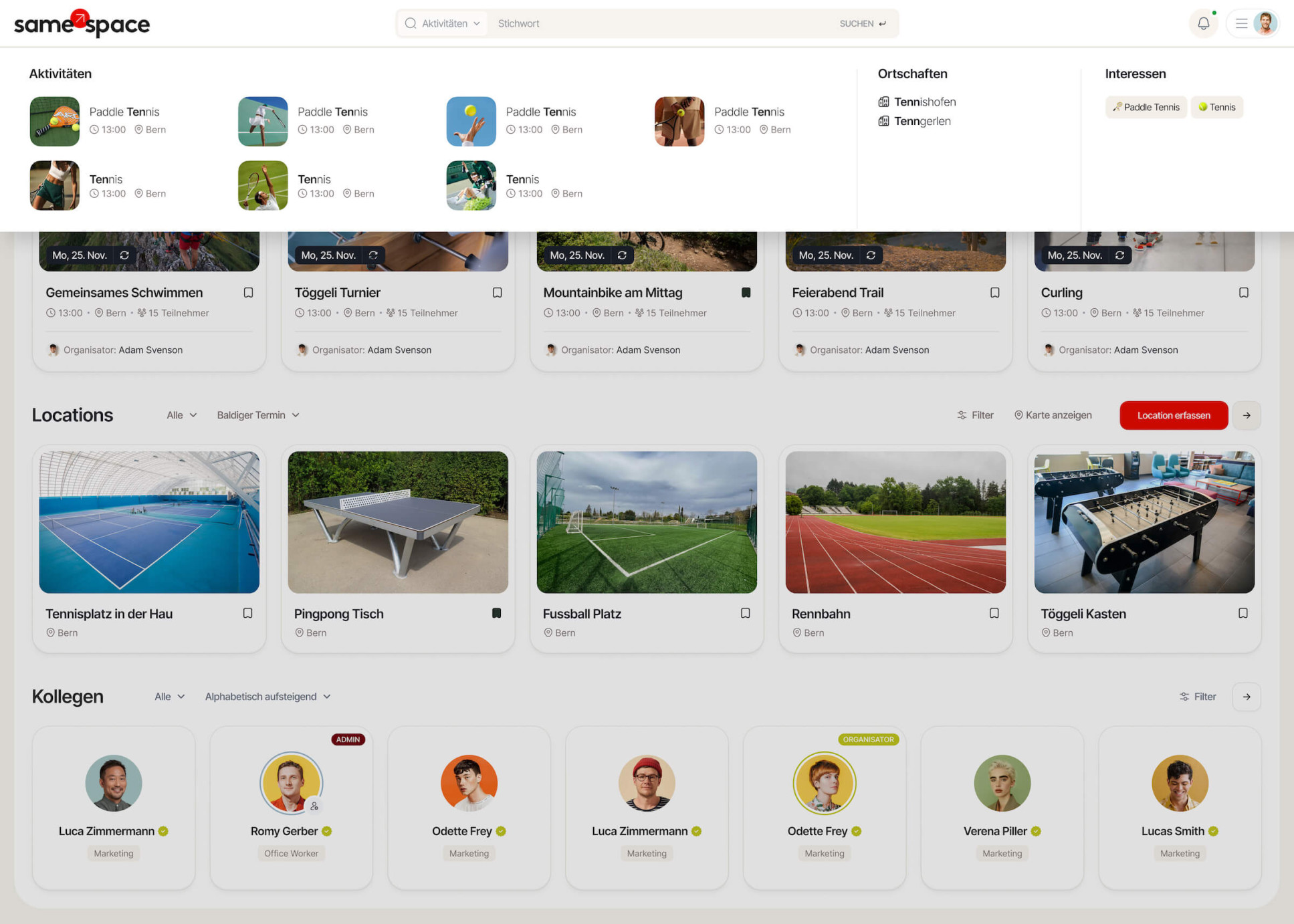 People look for structure, exchange and meaningful offers. same.space makes what connects visible through topic areas, interests and activities.