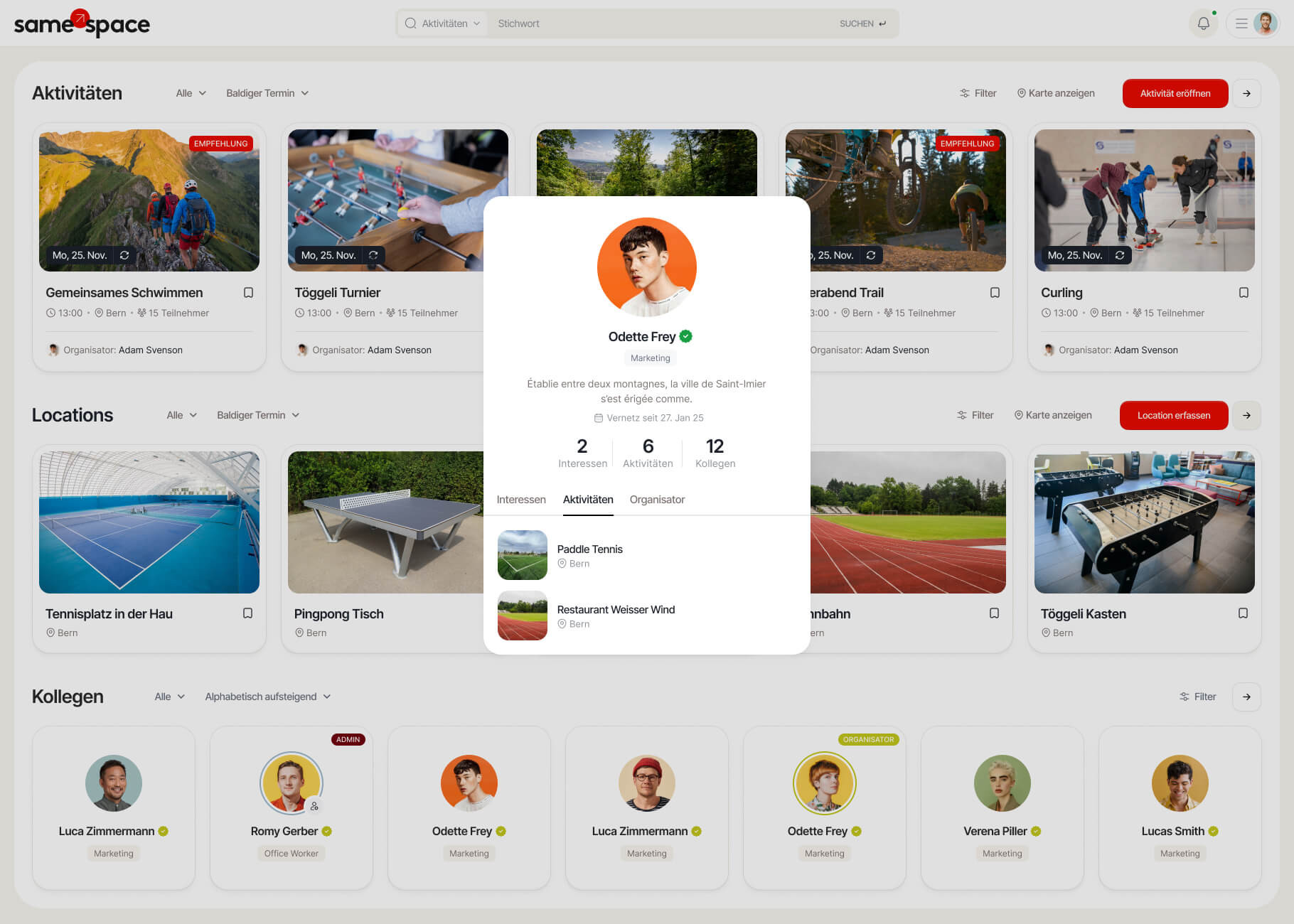 Personal profiles with information on interests, places and activities – only visible internally and privacy-compliant (GDPR).