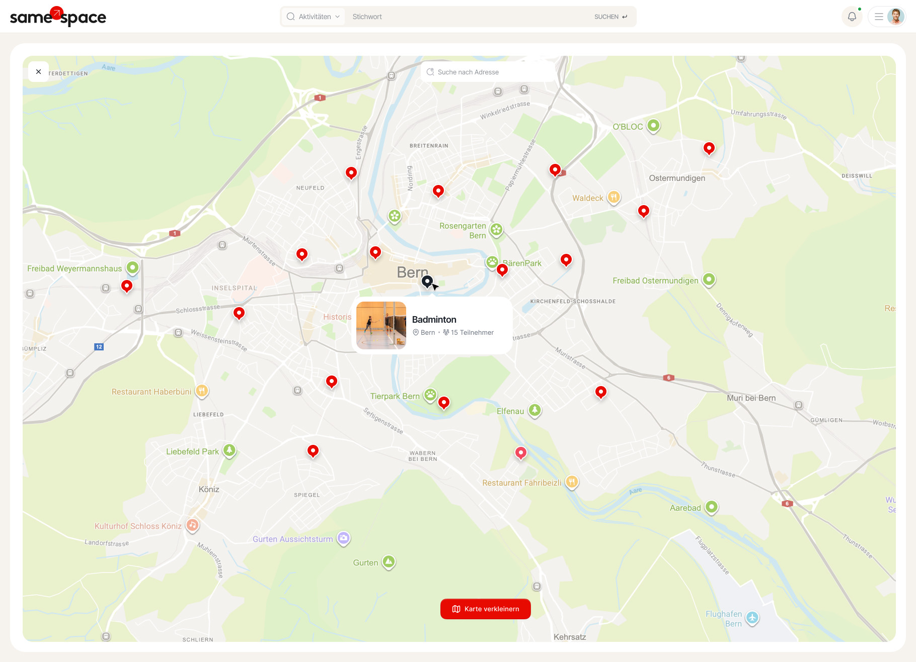 Users create personal profiles, find people with similar interests and discover activities and meeting points on an interactive map. They can also become active themselves, found groups, post points of interest, publish offers and invite others. This creates a vibrant community that enables low-threshold participation, promotes initiative and also brings quantifiable added value to the organisation.